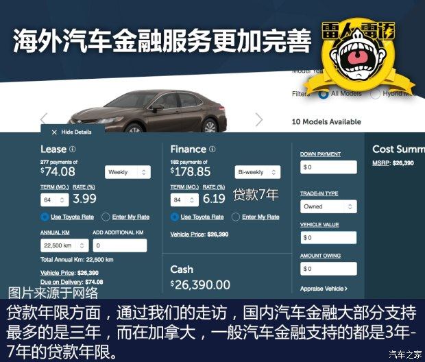在贷款年限方面,国内普遍的免息年限是三年。就雷哥知道的,蔚来刚刚上市的ES8在分期贷的年限方面较长,最长还款期限是5年。但是在加拿大,贷款购车的期限最长可以选择7年。实际上,在国外的营销模式现在普遍流行的还有一种体验式营销,也就是先祖后买,相信随着汽车金融服务在国内走向正轨,在未来还有望不断调整来使其更加完善成熟。