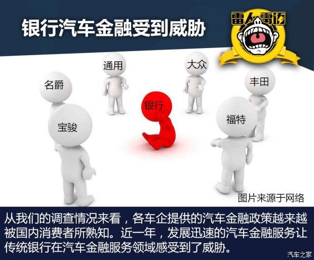 经过我们的调查,国内经销商4S店服务人员在购车方式上都会强力推荐贷款买车,在贷款买车环节无疑会推荐自家厂商的金融服务方案,而基本忽略银行的贷款政策,所以后者现在在4S店内处于被弱化的境地。