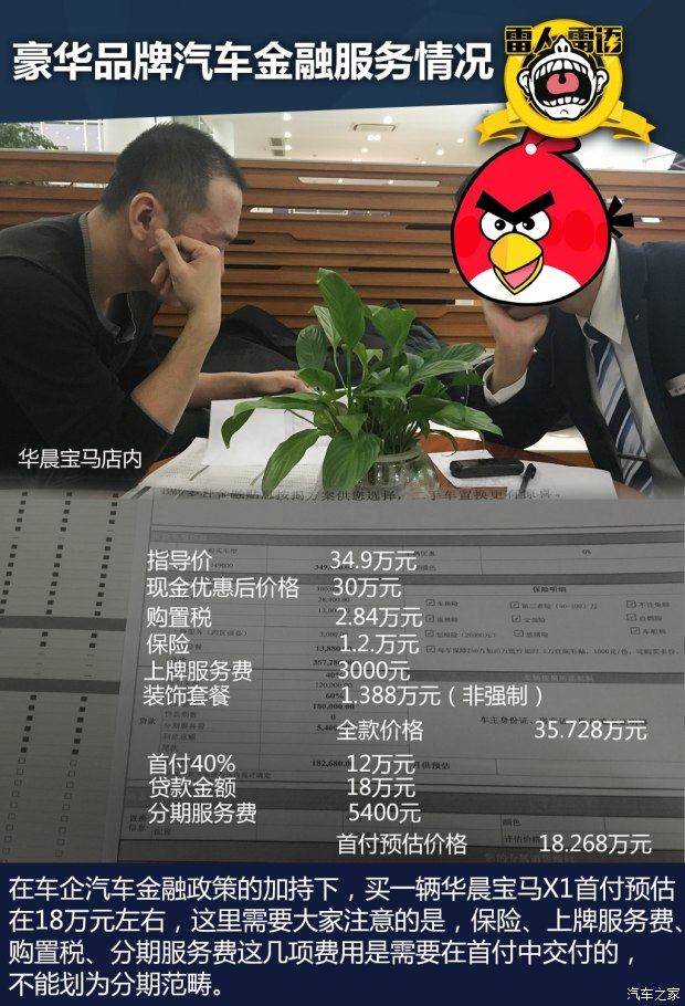 在豪华品牌方面,捷豹路虎、梅赛德斯-奔驰、华晨宝马均有厂商支持的汽车金融服务提供,而且现在的金融服务已经细化到会根据车型的不同衍生出多种版本。我们用华晨宝马举例,对于一款指导价为34.9万元的宝马X1来说,如果按首付比例40%进行付款,在满足提供身份证、房产证和账户流水的条件下,可以选择三年零利率的金融服务。