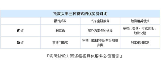 在国内,贷款买车的方式主要有银行贷款、车企提供的金融服务业务以及融资租赁公司提供的购车方案,由于第三种贷款购车的方式介于买车和租车的领域之间,形式相对比较灵活,贷款模式正处于稳步发展之中,因此没有被列为我们的讨论范畴。今天我们主要谈的是银行贷款买车和通过汽车金融公司购车这两种方式。