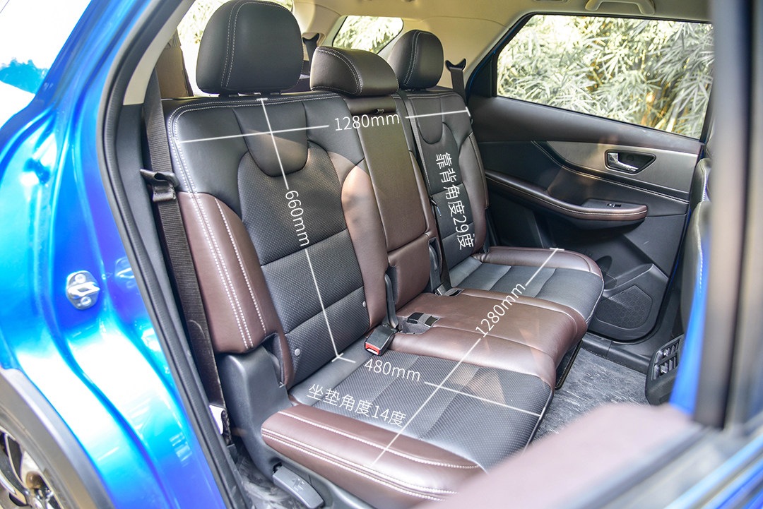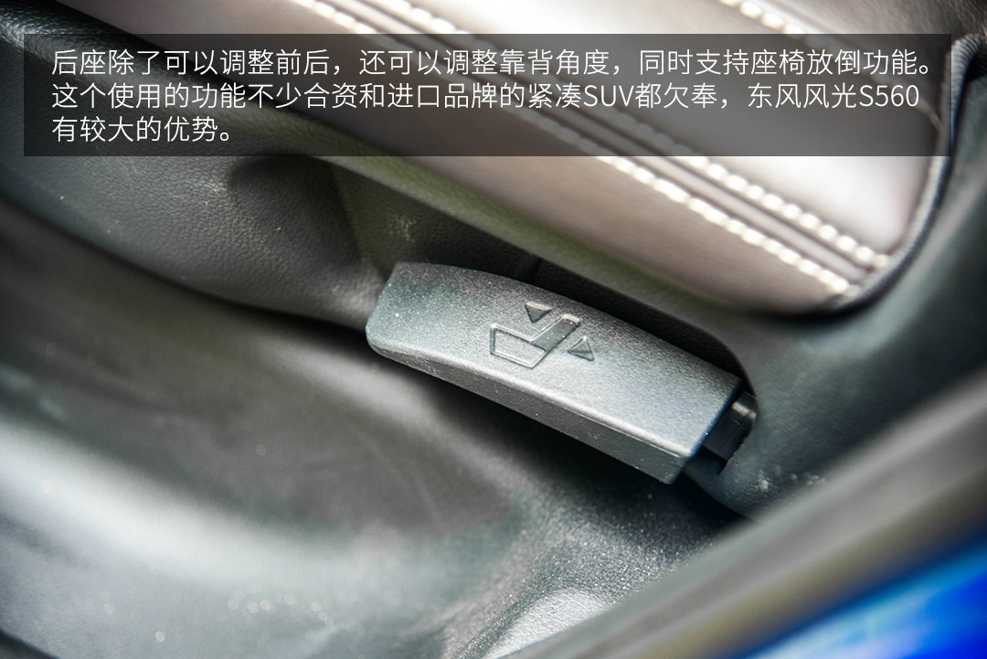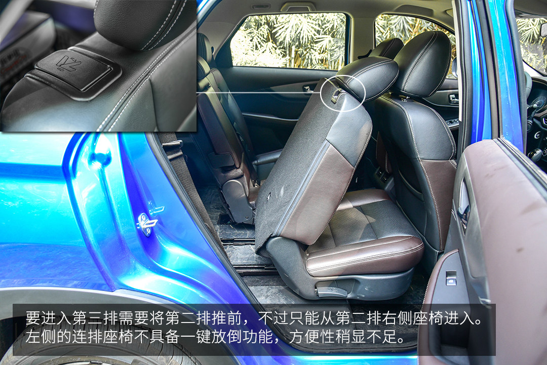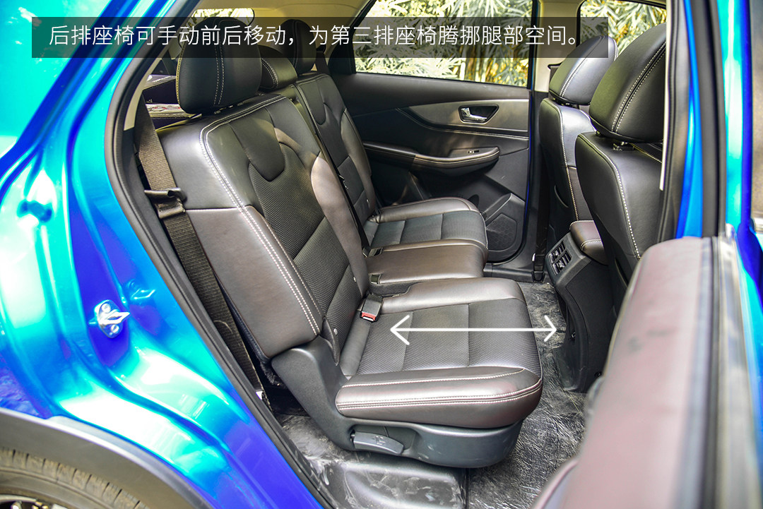 作为一台紧凑级别的SUV,对比其他大部分5座的对手而言,“7座”是东风风光S560的最大杀手锏。不过实际上这是典型的2+3+2的布局,第三排座椅更多的是临时性用途。其乘坐空间并不足,乘坐姿势也不舒展。不过第二排座椅的前后移动和靠背调整功能也作为个手段去解决这个尺寸导致的空间硬伤。那究竟内饰空间有什么特色?