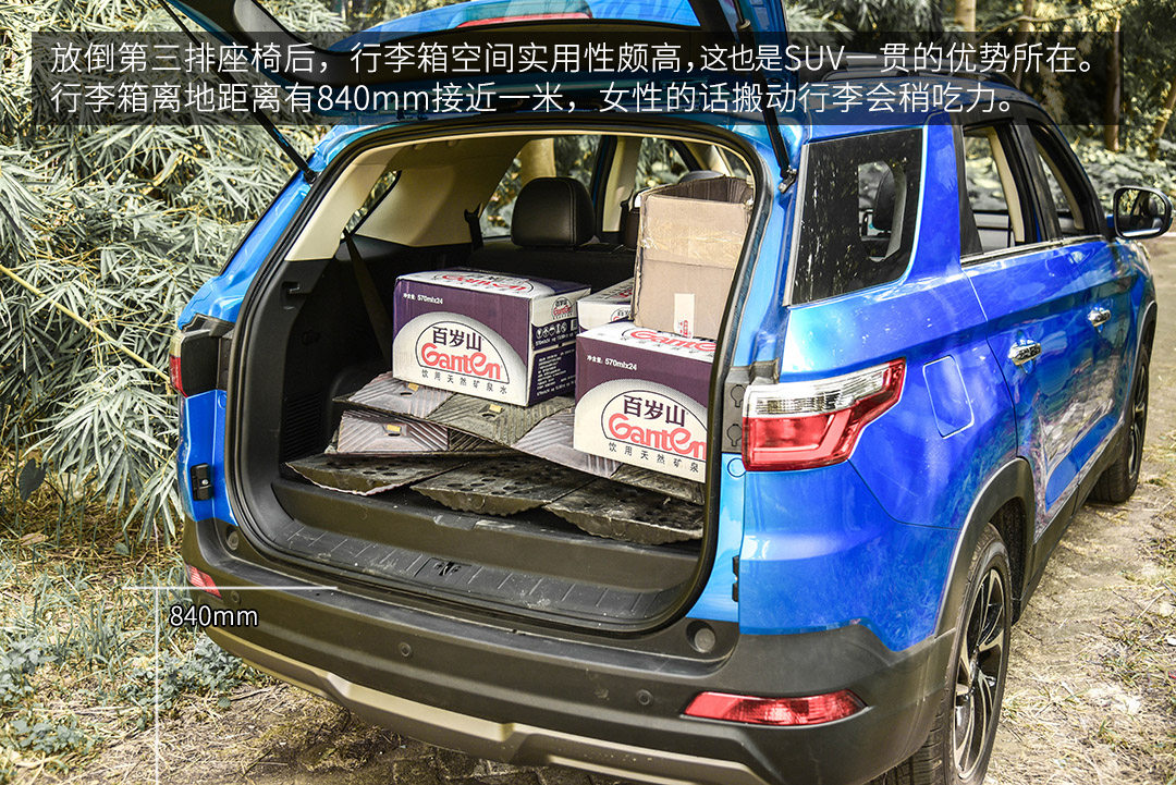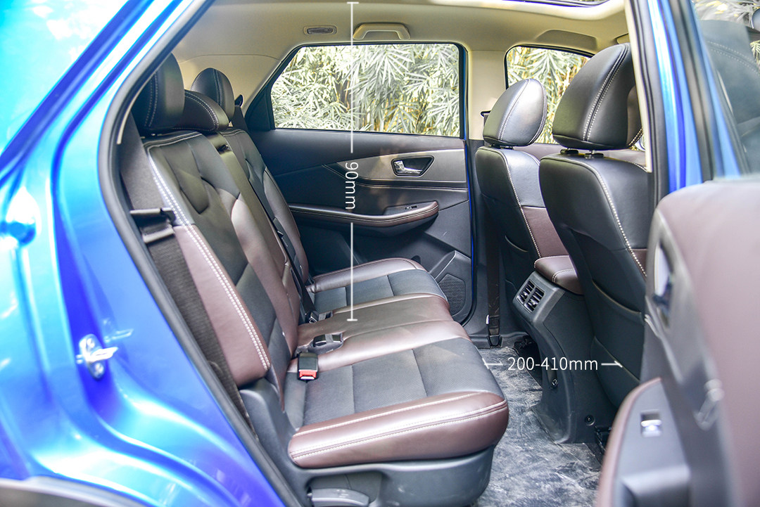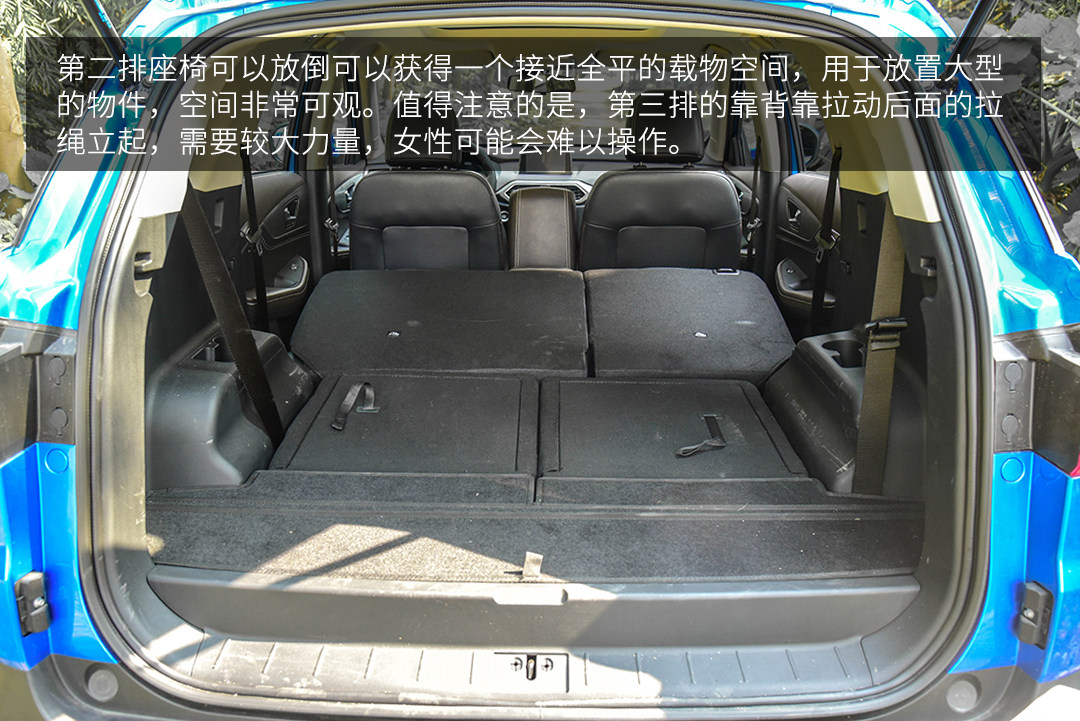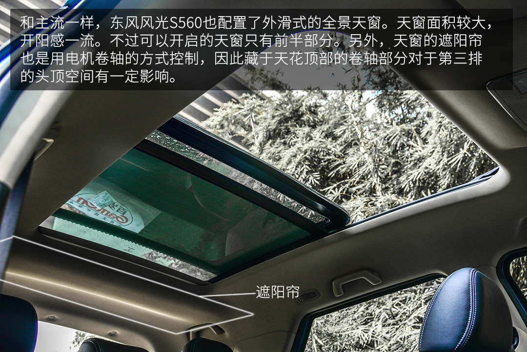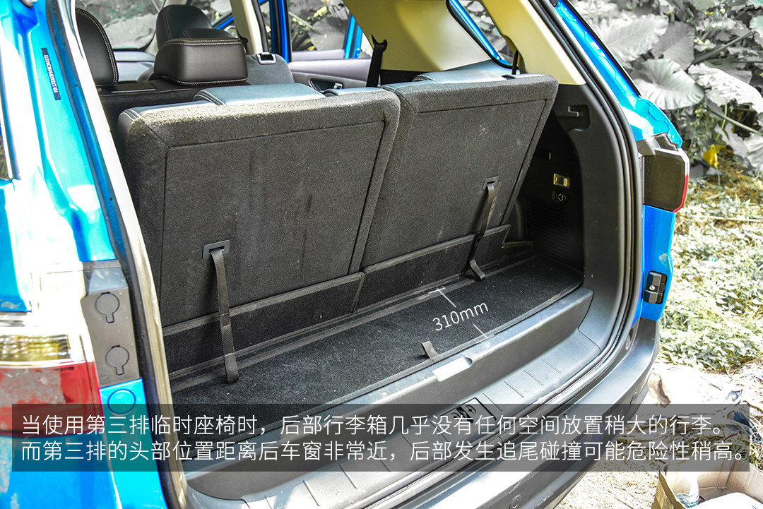 作为一台紧凑级别的SUV,对比其他大部分5座的对手而言,“7座”是东风风光S560的最大杀手锏。不过实际上这是典型的2+3+2的布局,第三排座椅更多的是临时性用途。其乘坐空间并不足,乘坐姿势也不舒展。不过第二排座椅的前后移动和靠背调整功能也作为个手段去解决这个尺寸导致的空间硬伤。那究竟内饰空间有什么特色?
