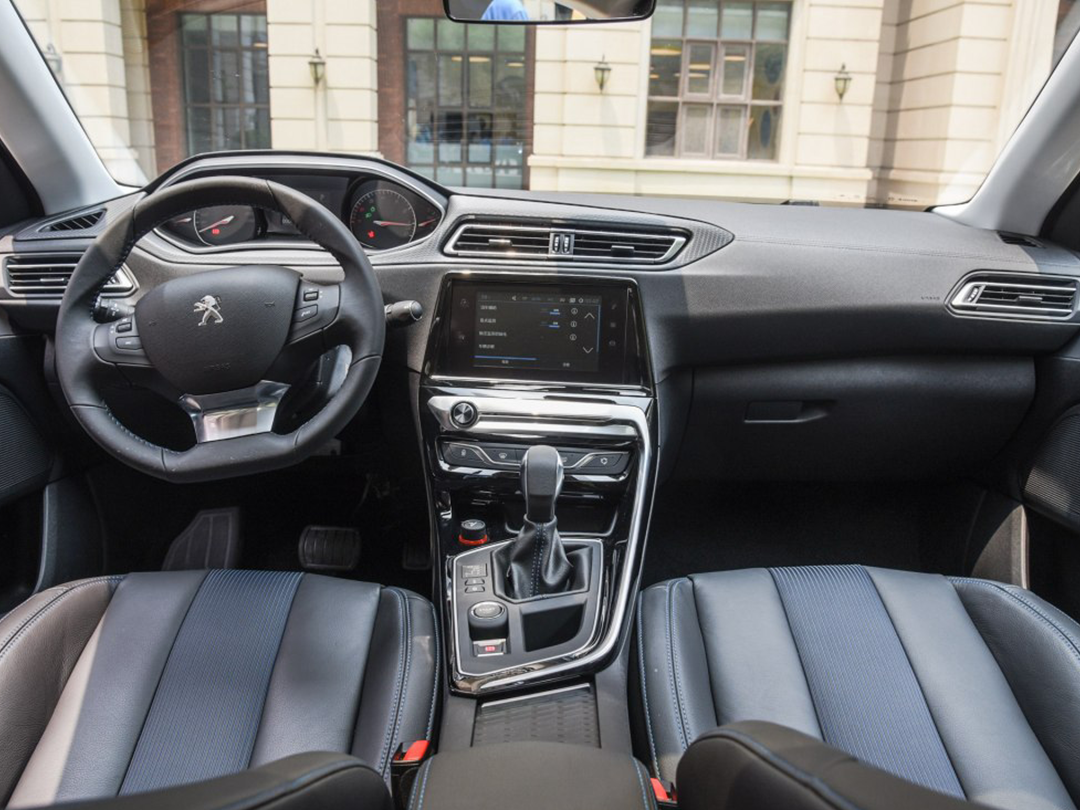 进入到车内,小巧的三辐式方向盘非常讨姑娘喜欢。中控下方的C字形镀铬装饰条,较好地起到了画龙点睛的作用。308有三款发动机可选,主力的1.6L+6AT动力输出平顺,没太多可挑剔的。