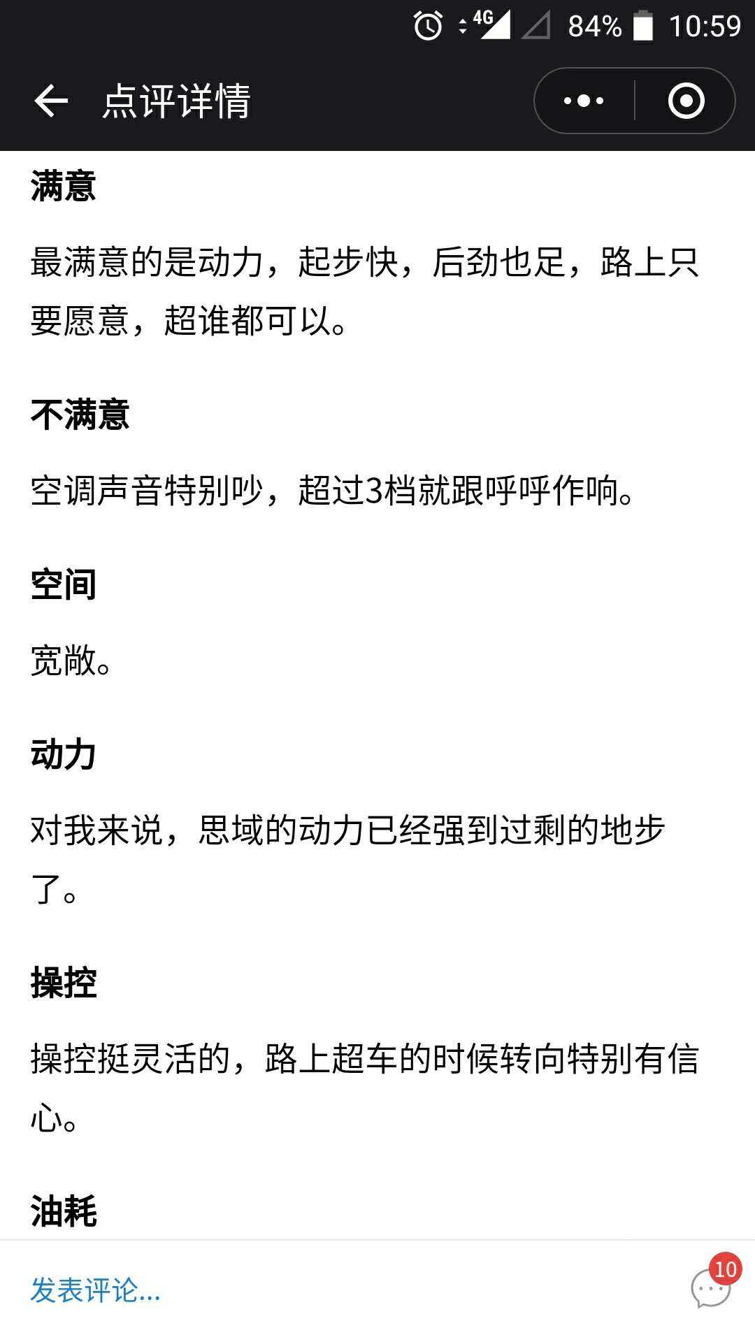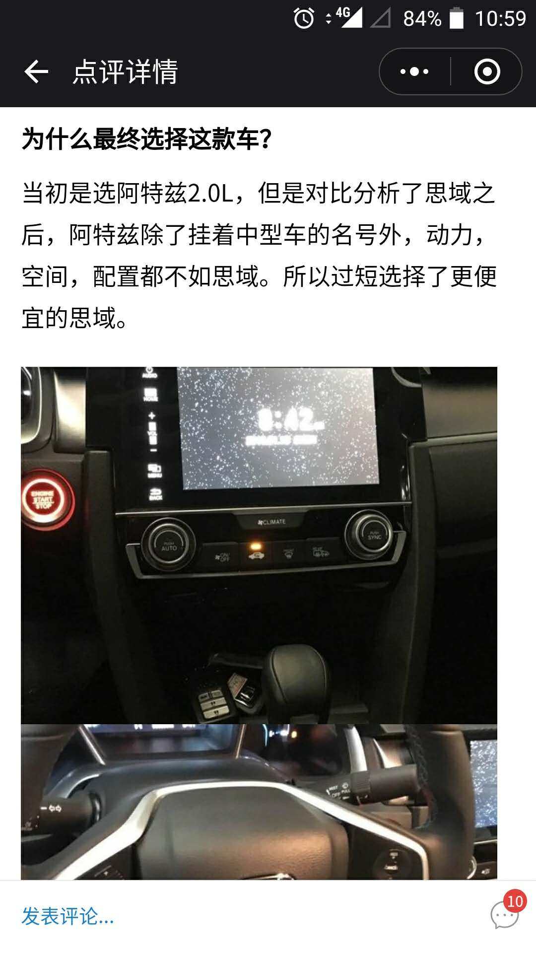好了,现在我想要了解下思域真实的用车情况,这时就要用到一个玩车教授小程序中一个非常好用的功能,车主口碑。这个功能如名字所示,就是来自全国各地的车主分享他们对自己爱车的评价,透过他们的口碑,我就能了解思域是不是真的像网上说的这么好?还是有其他什么缺点呢?