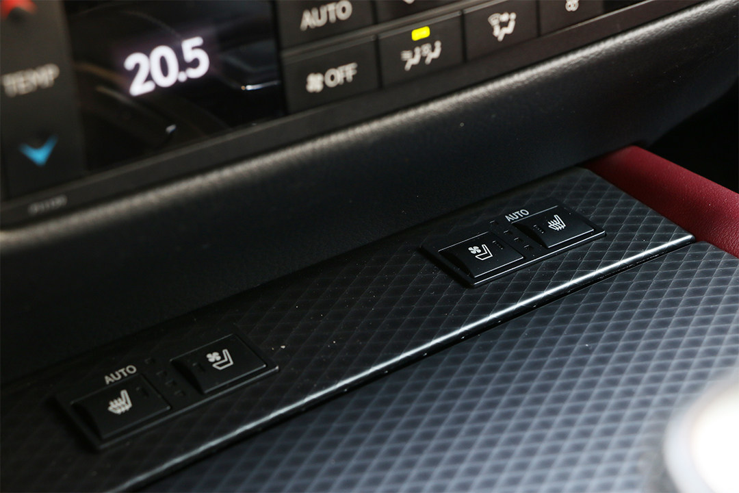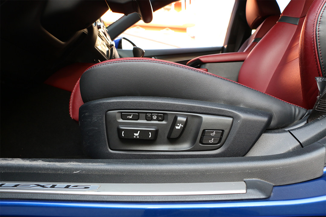在教授驾驶的这个GS 200t F SPORT的版本里,主驾驶位的座椅配置相当高级,该版本为我们配备了运动型座椅,还支持座椅16向调节,分别能够调节腰部支撑和腰部包裹,座椅坐垫的长短(有点像腿托)等等,而且在你调节该座椅的前后位置的时候,调节的按键质感十分好,在往前推动按钮调节座椅往前时,当你调节结束后,该座椅还会缓缓地继续向前移动几毫米来缓冲,整个过程不生硬,可能这就是人们所说的老丰田的“油腻感”了吧。同时,该前排主副驾驶座都支持座椅加热和通风。