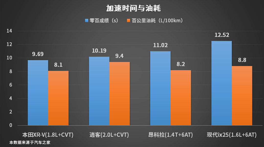 四车当中跑得最快的同时也最省油的自然要数本田XR-V了,它的油门响应积极,能激发你的驾驶欲望;而逍客与本田XR-V完全是两种不同的风格,逍客虽然开着足够沉稳但是比较无趣;昂科拉的1.4T发动机能提供不错的动力,6AT变速箱的平顺性还不错,但是油门响应稍有迟钝,节油性也不是很理想,现代ix25的动力与油耗表现都很一般。
