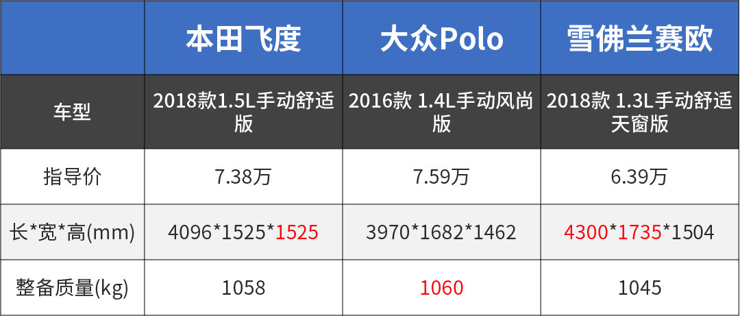 首先是小型车级别的对比,在热门小型车中,飞度的整备质量处于中等水平,比赛欧更重,比起Polo也只轻了2公斤!所谓的日系车比其他车要轻的言论是完全说不过去的。