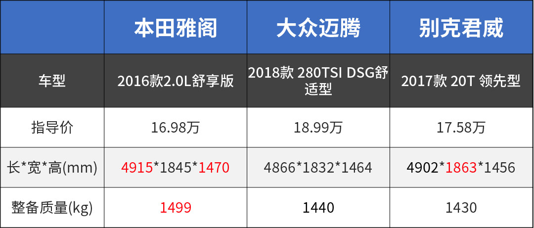 在最具代表性的中级车对比中,能见度颇高的雅阁比中级车销量冠军迈腾和美系的君威都要重不少,数据证明在讲究轻量化的当下,日系车并不比德系、美系更轻。