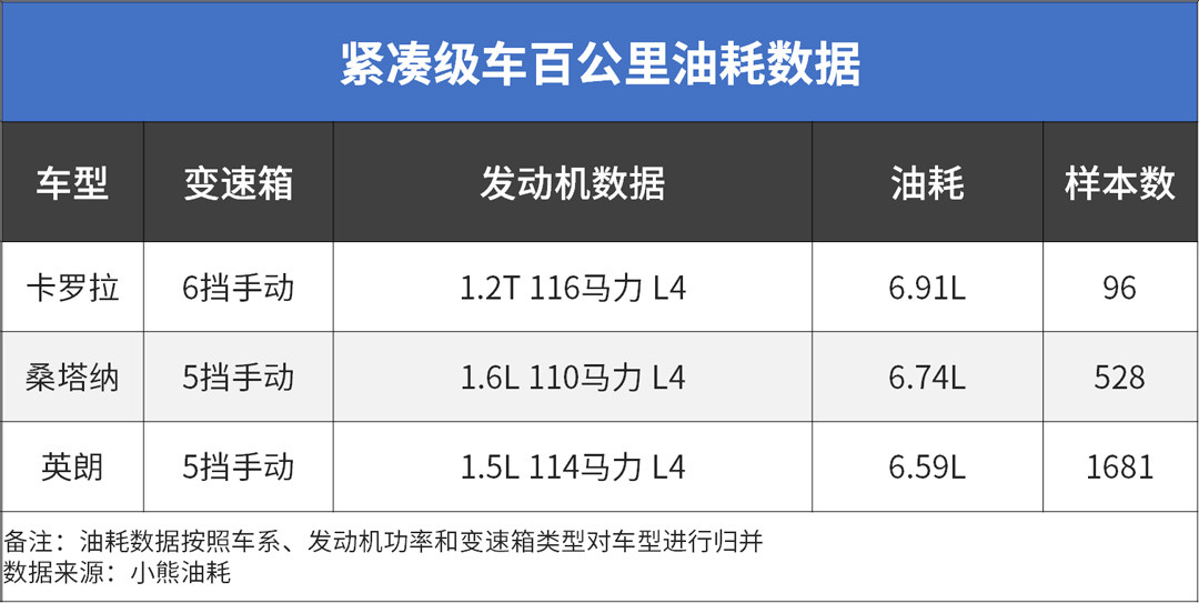 紧凑级家轿中,日系的卡罗拉油耗表现令人意外,1.2T卡罗拉的车主实测油耗达到6.91L/百公里,比德系的桑塔纳与美系英朗都要高。