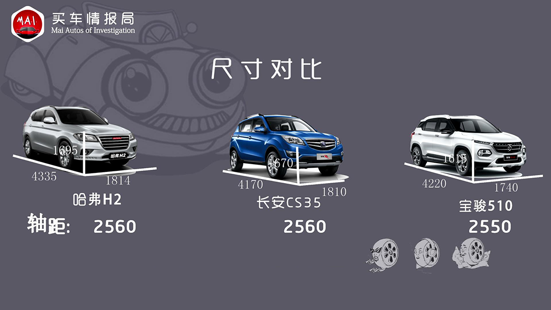 三车在车身尺寸方面也有所差距,哈弗H2的长宽高都是最大的,长安CS35处于中间,而宝骏510虽然在个头上小了一丢丢但空间表现丝毫不差。