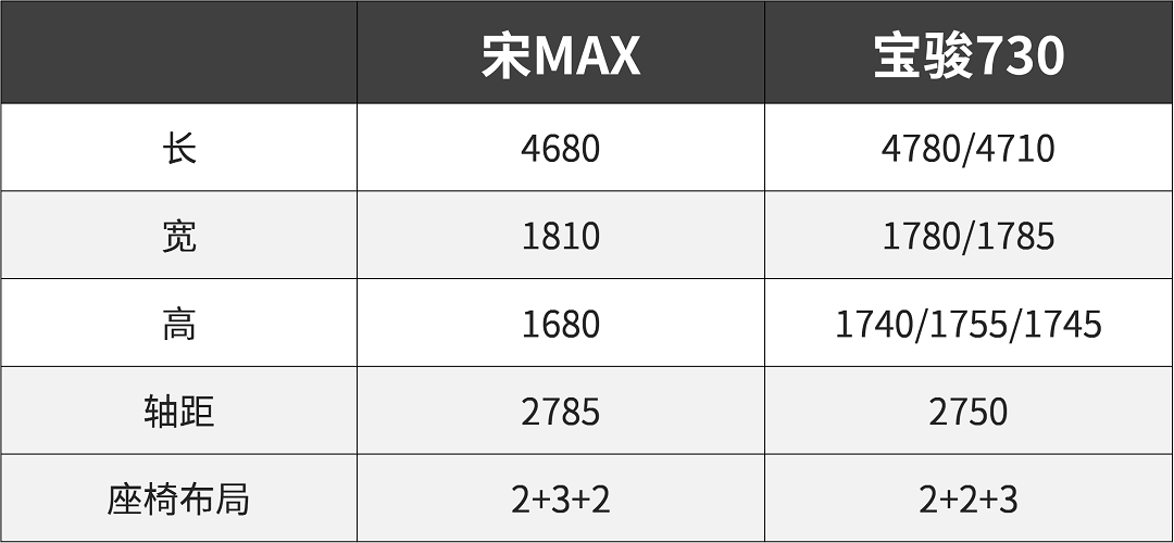 对比结果显而易见,宋MAX第三排实用性稍逊一筹,其实是更适合一家几口或者三五知己出游,车美路上的风景更美,岂不美哉?而拿730去出游显然不在话下,同时还有更强的载货能力,对于自家开一个小商品或者小餐馆的消费者来说最合适不过,两车针对的消费者略有差异。