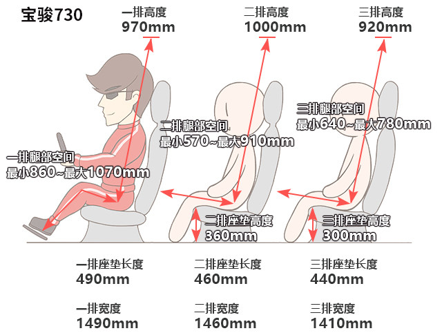 而730由于是2+2+3布局,第二排中间有过道,进入第三排更方便,同时第三排乘坐空间更宽敞,所以第三排坐人是没问题的。