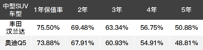 和大众途观一样,丰田汉兰达在中型SUV领域的保值率同样有着不可撼动的地位,新车1-5年保值率皆为市场第一,不过真正为汉兰达打下江山的当属当年2015款之前的自然吸气车型,自2015款汉兰达在自然吸气车型的基础上推出2.0T版本,转眼间日前上市的新款汉兰达已经完全取消了最后的3.5L V6车型。显然,外观更加时尚动感,配置更为智能安全的新车或许才是眼下市场更需要的。
