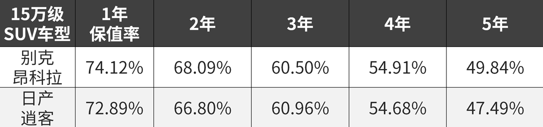 别克昂科拉和日产逍客作为15万级SUV的佼佼者,其实称得上是这个价位资历颇深的老前辈了,因此相比其它后来者有着更深入人心的印象与市场积淀,成为这一级别的3-5年保值率领头羊实至名归。不过个别人可能会对本田缤智、XR-V这类热门小型SUV没有上榜表示疑惑,像XR-V这款车型新车3年保值率也达到了61.46%,甚至超过了昂科拉,不过碍于2014年才上市,相比这些元老显然还是太过年轻啊...