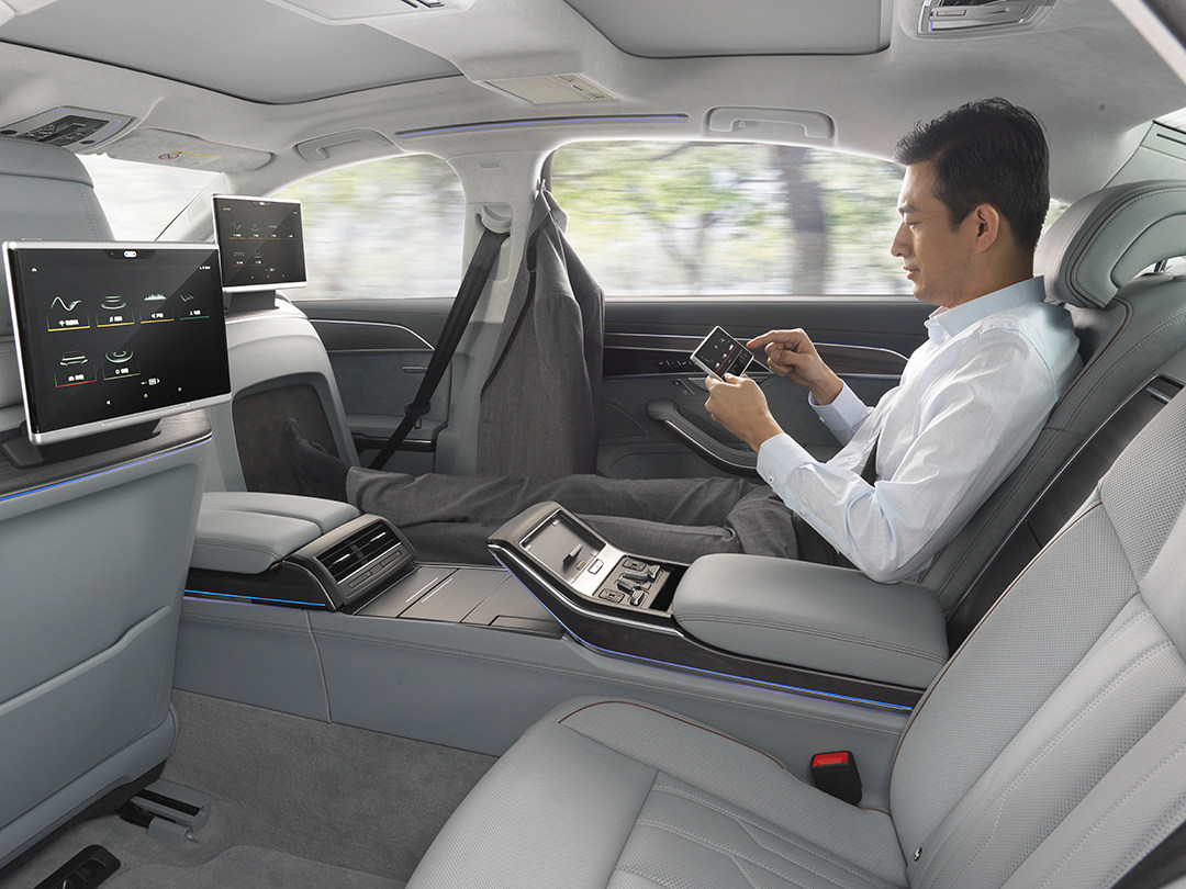 对于时下而言,用一块触碰灵敏的大尺寸多媒体屏幕是诠释所谓智能化最简单粗暴的表达方式;哪怕是彰显着格调的豪华品牌同样不能免俗;全新奥迪A8L用了六块多媒体屏幕布局整车内饰,其中五块支持触控,其中较为有亮点的是前排座椅后方两块基于安卓系统开发的可拆卸平板电脑,让车内的可玩性增色不少。