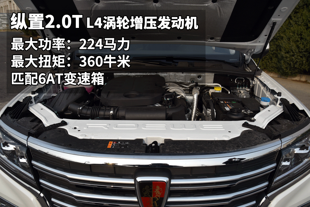 荣威RX8搭载的2.0T涡轮增压发动机最大功率224马力、峰值扭矩360牛米,对于它的大尺寸车身和非承载式的车身结构来说这样的动力并不算十分突出,与它匹配的是来自爱信的6AT变速箱。