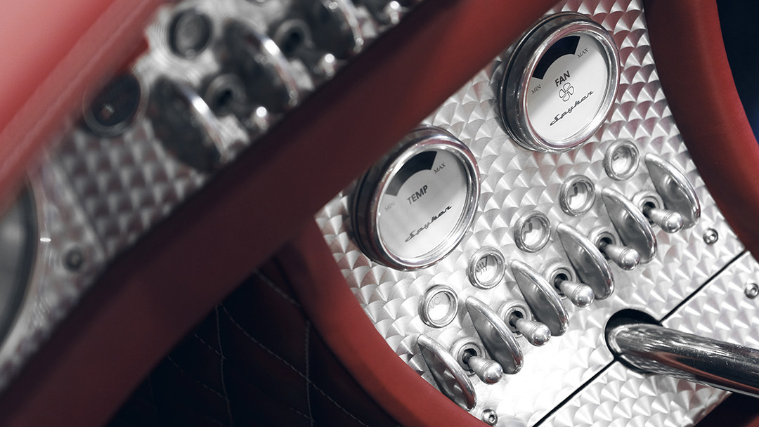 论外观设计,其实C8 Spyder的长相一点都不凶猛,反而有一种优雅、柔和的感觉,而只能开启下半部分的侧窗以及剪刀门又有着非常浓烈的赛车风味;至于大量金属部件和真皮混搭的内饰则是在赤裸裸的秀着机械美感。如果说兰博基尼Aventador的内饰让人联想到的是现代赛车座舱,那么C8 Spyder的内饰则是一种上世纪桨翼飞机驾驶舱的感觉。