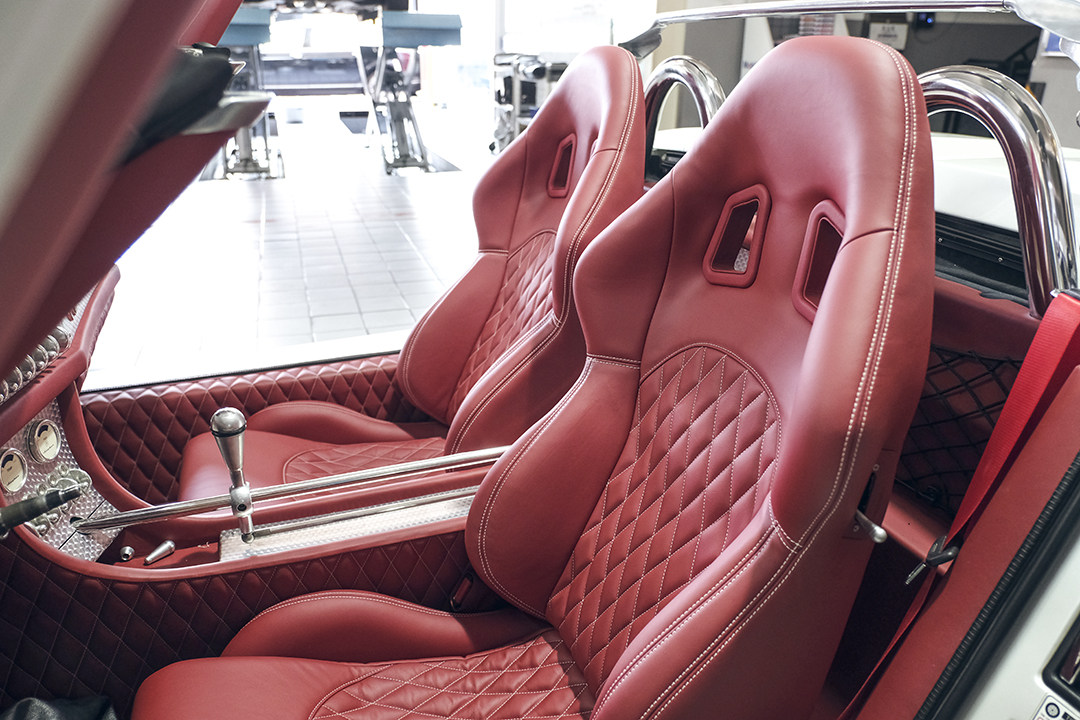 纯手工制作的真皮内饰透着一丝奢华的气息,但是大量外露的铝合金和不锈钢部件却又带来浓厚的机械感,这种软和硬的碰撞带来的奇特感觉是在目前市面上绝大部分车型都无法感受到的。