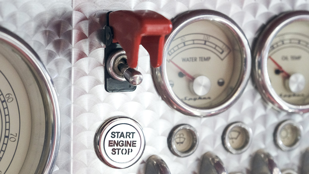 要想启动这台C8 Spyder,你需要先打开这个红色盖子,接通电源,然后再按下一键启动按钮。
