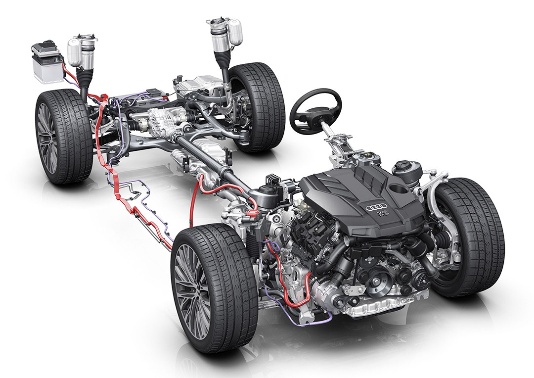 全系标配48V轻混动,是一个相对而言更新的概念,看似只是简单的将常规车型上12V的蓄电池换成了48V,实际上是饱含着更多长远的目光与理念。省油是第一目的,这款3.0T双涡轮增压发动机可以节省0.7L左右的综合油耗;而满足未来更多车内电气化的功能需求,则是48V轻混动系统得以运用的另外一个亮点。