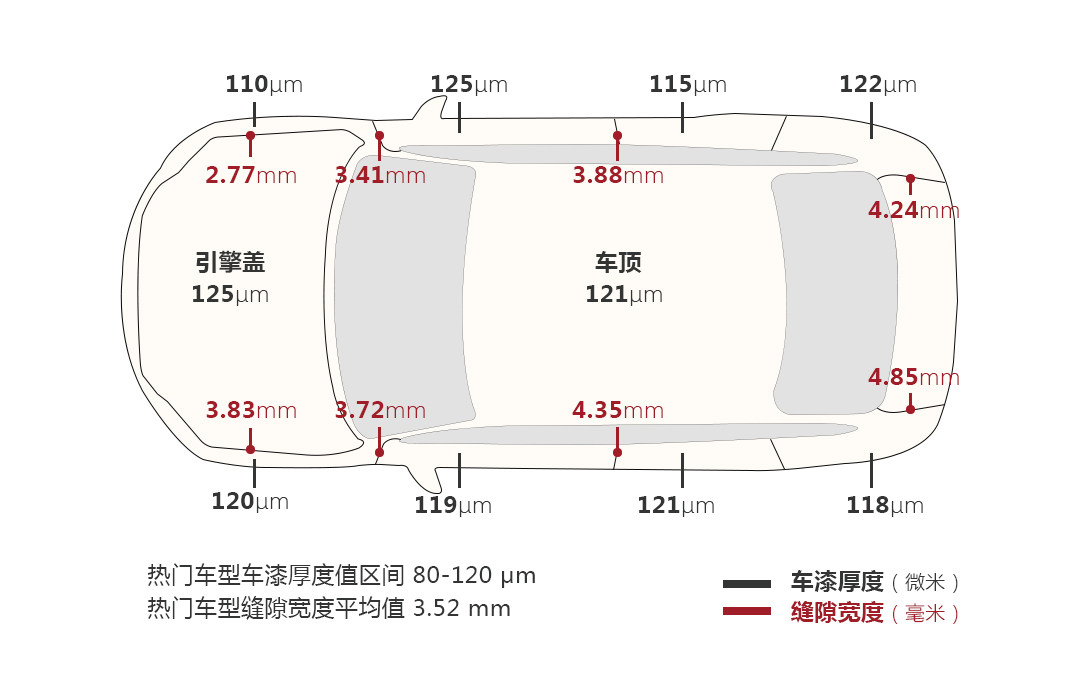 从外观上看,Cayenne保持了这个级别一贯的水准,车漆的喷涂厚度保持在110-125μm之间,厚度均匀,而缝隙则有点不规整,在2.77-4.85mm之间。