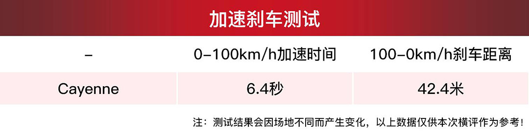 本次试驾的车辆配备的是四季胎,百公里加速6.4秒,100-0km/h刹车距离为42.4米,制动距离有点长,如果换上一套相对运动的轮胎,相信成绩会更进一步。