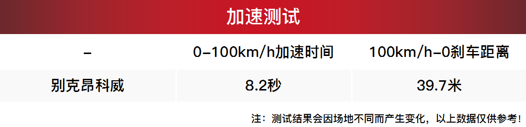 在加速测试中昂科威的扭矩峰值偏晚的问题也一定程度上影响了加速成绩,实测8.2秒的成绩虽然算是不错了,但是激烈驾驶时感觉发动机的出力还是有些晚,需要拉到较高转速才有明显动力爆发。