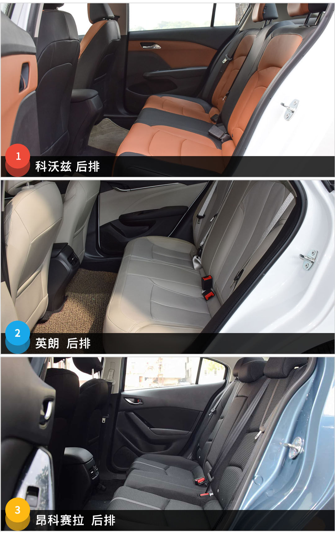三车的后排空间一目了然,昂科赛拉的空间确实是局促,而其它两款车这不存在这个问题了。