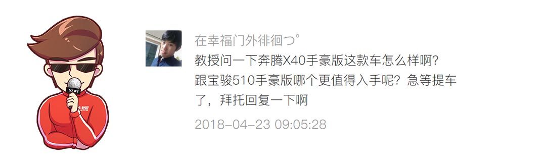 X40这款车的热度虽然没有宝骏510高,但是自身的表现还是非常不错的,外观相比510来说比较稳重,采用1.6L自吸发动机动力输出更强,较硬的悬架调校则对车身有很足的支撑性,驾驶感受要优于510,不过在性价比方面还是510更胜一筹,假如你更追求行驶品质的话就选X40吧,如果追求性价比的话,那么510是一个更加合适的选择。
