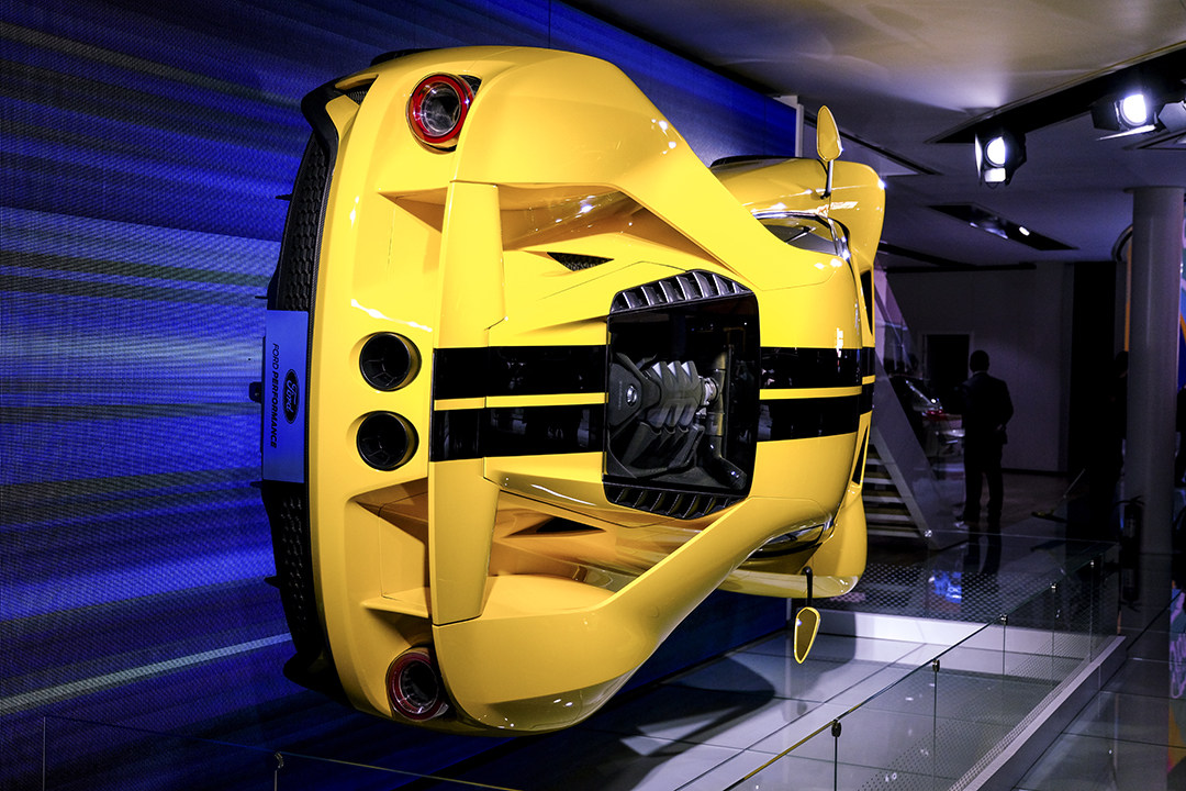 在本次北京车展,福特把新一代GT挂在了墙上,视觉效果不错,但是拍照就显得有些奇怪了。