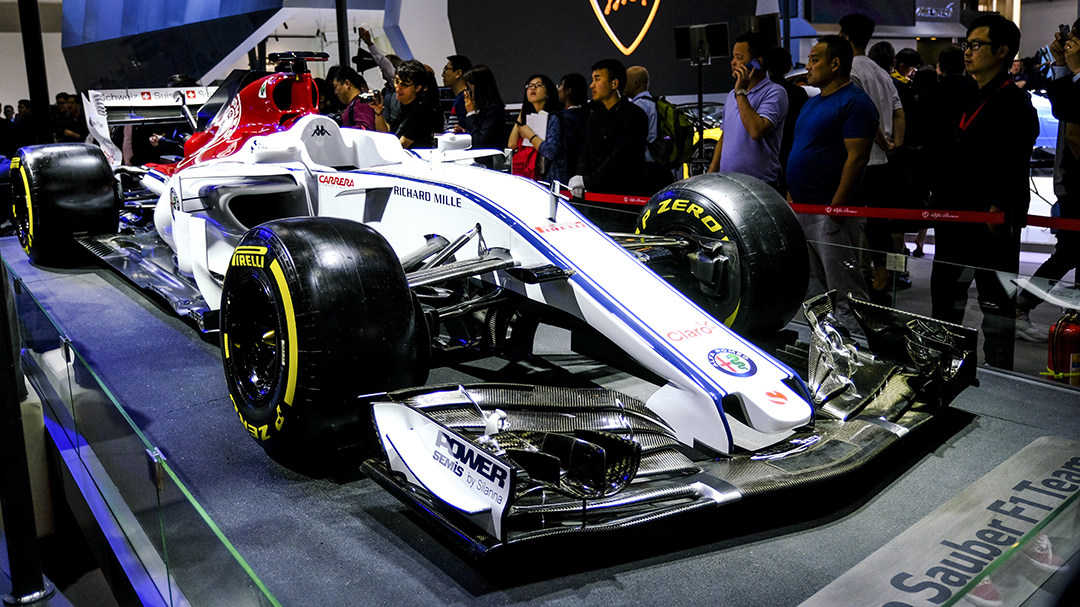 阿尔法罗密欧在全面赞助索伯F1车队后,今年也把换上全新阿尔法罗密欧涂装的索伯赛车带到了展台,只可惜这是目前围场内竞争力最弱的赛车之一。