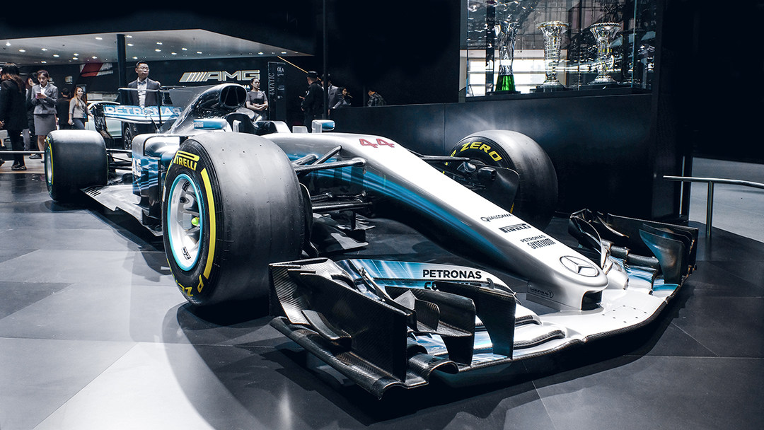 奔驰依旧在展台上摆放了他们征战F1赛场的W系列战车,今年展出的是2017赛季的W08赛车,这款赛车在上赛季表现出强大的统治力,帮助奔驰实现F1四连冠。