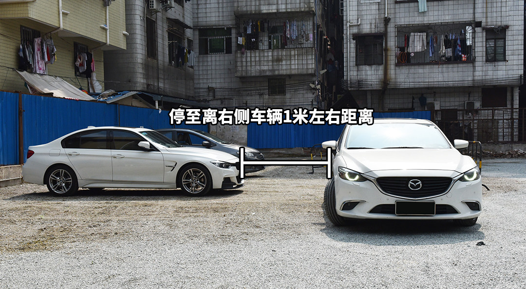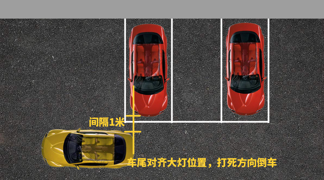 步骤一:停车至离旁边车辆1米左右的距离,车尾处在旁边车辆的右大灯位置。然后打死方向倒车,期间可以观察右边距离右车的距离,适当调整方向。