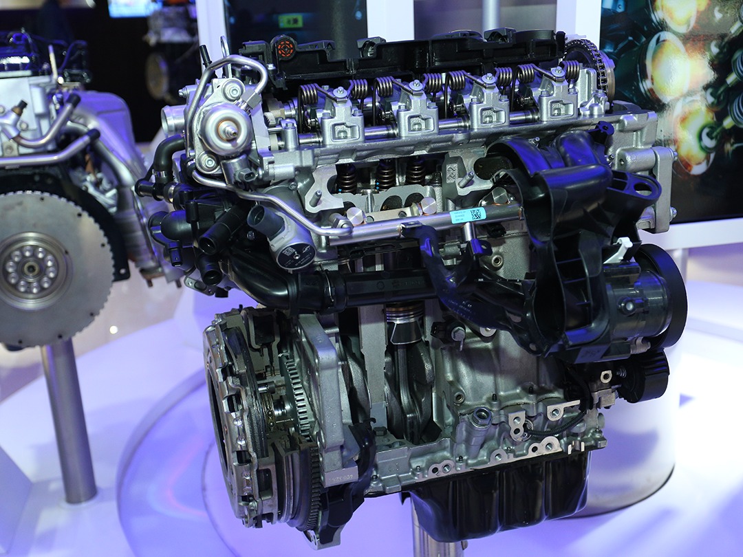 1.6T(CE16)发动机,最大输出150KW和280Nm(1800-4500rpm),总质量为123kg。这款发动机采用了缸内直喷、双涡管增压、铸铝缸体、连续可变气门升程、D-VVT、可变机油泵、开关式水泵、电子节温器、启停技术、锻造曲轴、分离冷却、低摩擦副设计、热管理系统、前排气设计、双质量飞轮、集成式排气歧管技术。