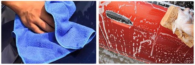 3.洗车最好用几块抹布(海绵),一块用来预清洗,一块用来打泡沫,一块擦干车身。分阶段使用,避免混用,担心预清洗后,抹布清洗不干净,颗粒砂石残留在抹布上面,后续使用的话会刮伤漆面,尤其深色车漆在阳光底下,细划痕尤为明显。
