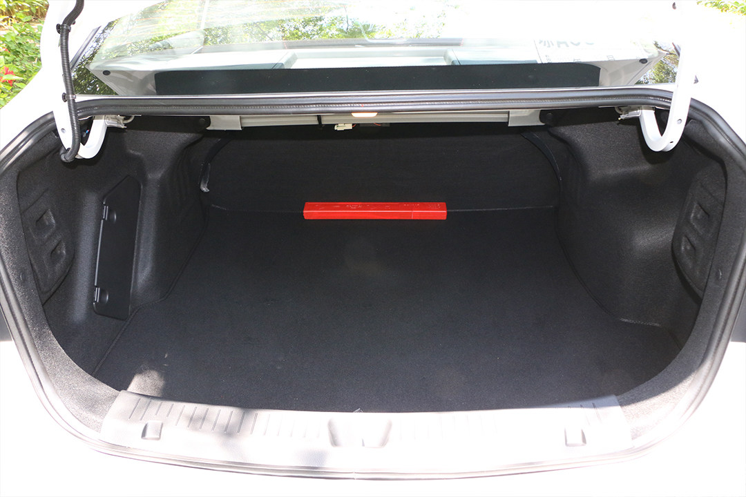 后备厢官方容积为415L,不算大,但纵深比较深,有点不足是第二排座椅不能放到,中间也不能把扶手拉下来从后备厢拿东西,这个有待改进,另外再提一下,后备厢真的应该加上一个打开按钮或者拉扣。