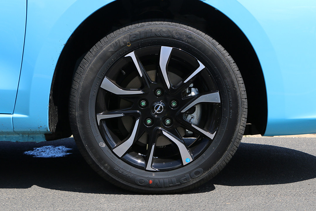 前后都采用盘刹制动,标配205 /55 R16的轮胎,轮胎是韩泰的,轮毂形状也是比较运动年轻的设计。