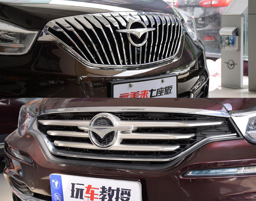 福美来7座版的造型设计是比较年轻、张扬一点,外观最夺目的就是前脸的进气格栅和大灯的设计,大量的竖立镀铬饰条,对于颜值高低教授保留意见,而F7采用了横向的镀铬饰条,看起来更居家一点,而大灯的造型是一样的,相比福美来7座版,我觉得福美来F7更容易接受一点。