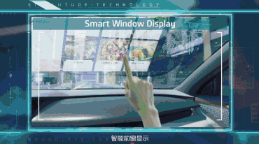 智能前窗显示:车辆行驶过程中,可通过前窗显示屏搜索周边信息。