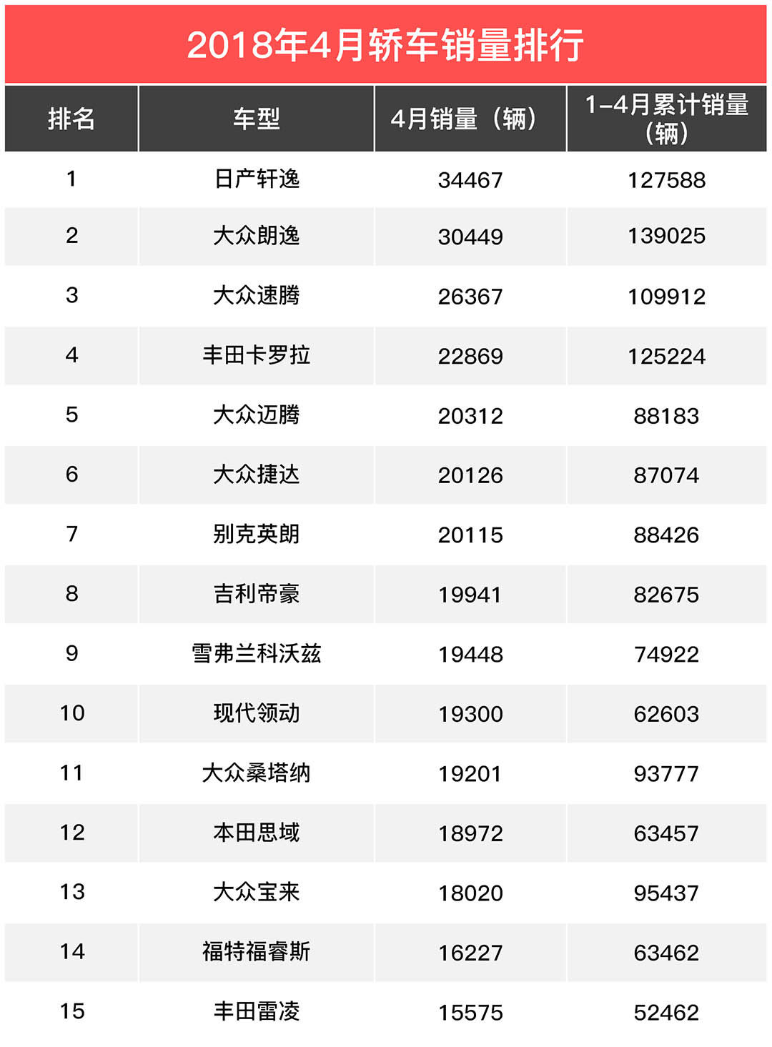 4月的轿车销量似乎受到了阻滞,只有日产轩逸以及大众朗逸突破3万,且销量榜前十都有不小的变动,这是怎么一回事?咱们一起看看。