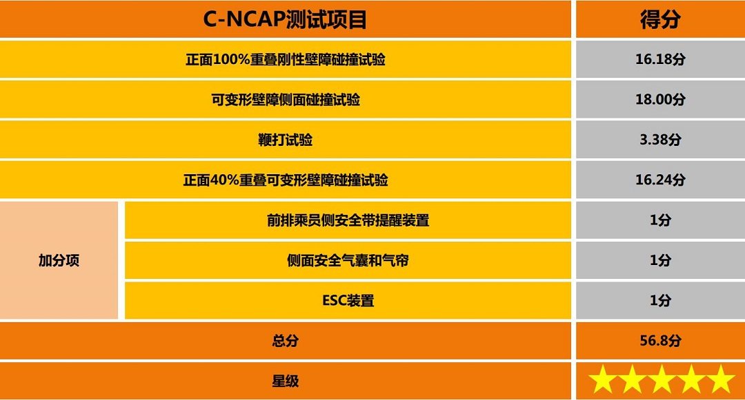 正面100%重叠刚性壁障碰撞、正面40%重叠可变形壁障碰撞、可变形移动壁障侧面碰撞还有鞭打试验,还有一些附加安全配置项目,譬如安全带提醒以及安全气帘;总分为70分,当然越高分即代表越安全。