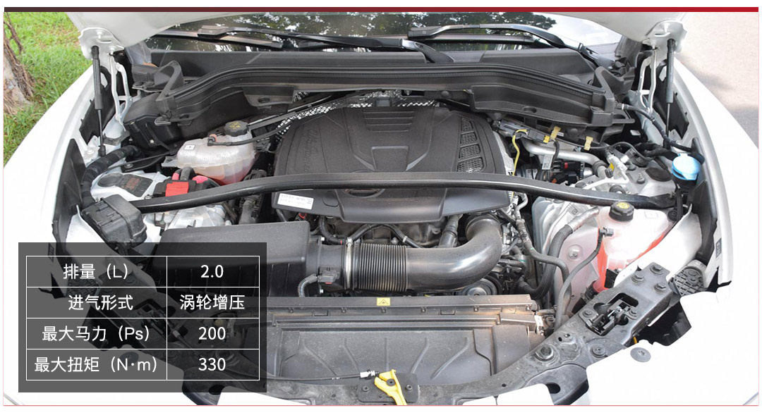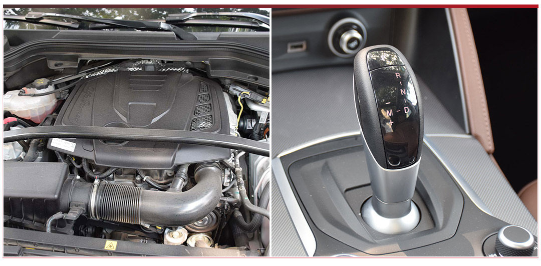 今天测试的这款Stelvio身上配备的是低功率2.0T涡轮增压发动机,最大功率是200匹马力,最大扭矩是330牛·米。与发动机匹配的是一台来自ZF的8AT变速箱。
