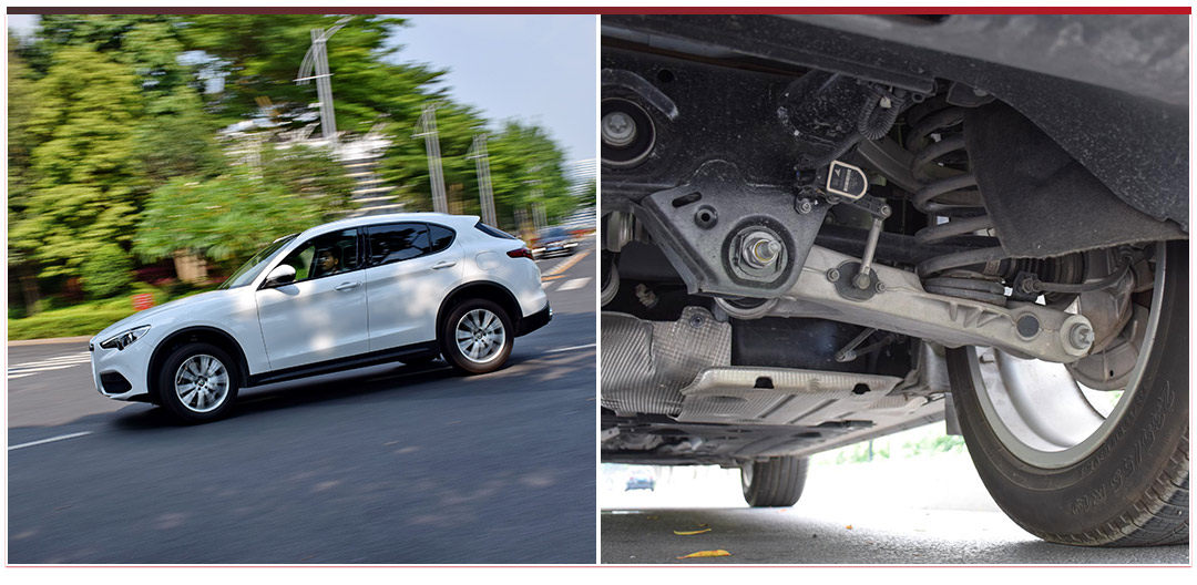 Stelvio采用前后双叉臂的悬挂形式。后悬挂采用的FSD主动式减震器。这种减震器能够有效过滤路面细碎的小震动,提升整车的舒适性。而且,在前文提及,Stelvio的侧倾过大,所以它的悬挂也是舒适取向的。为什么一台运动型SUV的悬挂会采用舒适取向的调教?大概是因为阿尔法·罗密欧觉得普通版的Stelvio只配去买菜,真正的运动车型叫Stelvio QV。