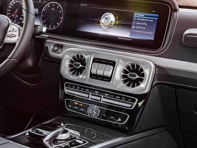 方向盘采用了S级上配备了双拇指控制系统的三幅式。作为大G最具标志性的三把差速锁,在新一代大G上依旧放在了最中央的地方,副驾驶座前中控台上的扶手也变得越来越精致了。好吧,奔驰把这些改了之后的确好看,直男们也就认了。