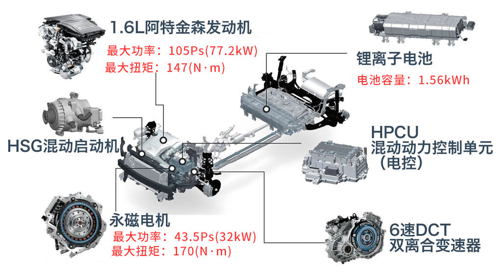 与混动系统匹配的是韩国现代起亚自研的6DCT变速箱,电池则是容量为1.56 kWh的锂离子聚合物蓄电池。电池设计在后排坐垫下方,避免了乘坐空间及储物空间被侵占。