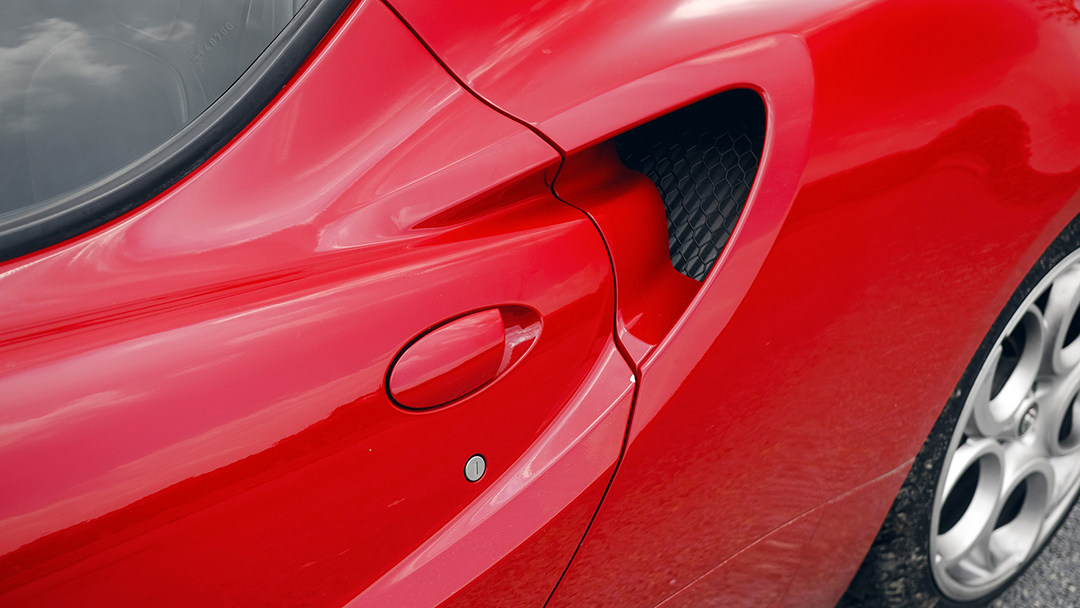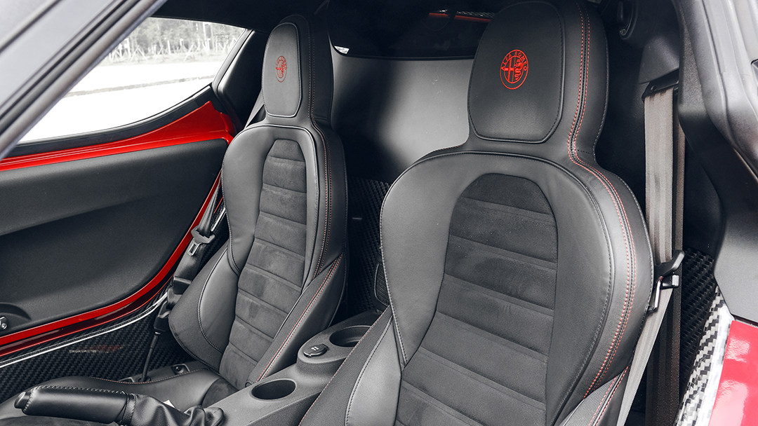在座椅后方的发动机也颇有意思。这副发动机名为“1750”,意思是排气量为1.75L。加上一颗涡轮增压器,最大马力能够压榨出240匹。采用不够2公升的排气量,是由于要将引擎的体积尽量做得紧凑,同时也为了重量更轻。 因此在4C上,前后重量分布约在38:62。马力数据虽然不大,但是净车仅有895公斤的重量,让4C可以在4.5秒完成百公里加速,极速也能达到258公里/小时。在实际试驾中,可以明显感觉涡轮比较大,调校也比较原始。初段的涡轮迟滞会比较明显,涡轮在起压之后,伴随着非常明显的吸气声,就会有非常饱满的动力一直持续到红区。每次收油时,就在座椅后方的引擎泄压阀会有非常明显的哨声。