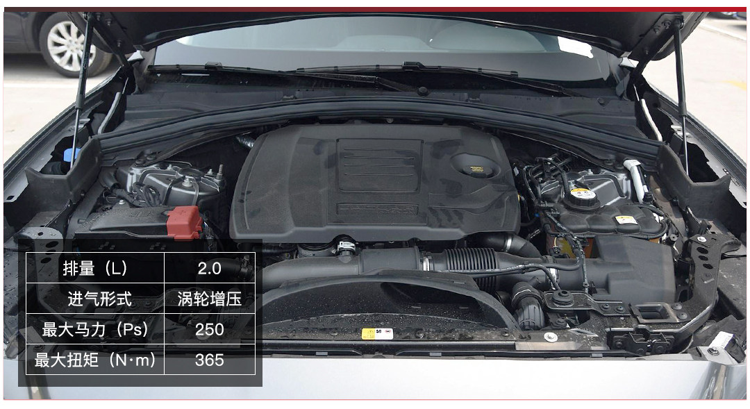 捷豹旗下产品中常见的动力总成:自家2.0T直喷引擎+德国采埃孚ZF 8AT,匹配调校功底丝毫不怵运动标杆宝马,在动力性能和燃油经济性间找到韧性平衡。