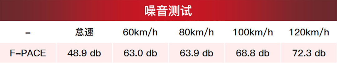 隔音降噪与振动抑制方面,F-PACE将传进舱内的噪音分贝控制在合理范围内,整体表现略逊丰田汉兰达,对于定价六十多万的豪华车型而言,NVH环节还能做得更好。
