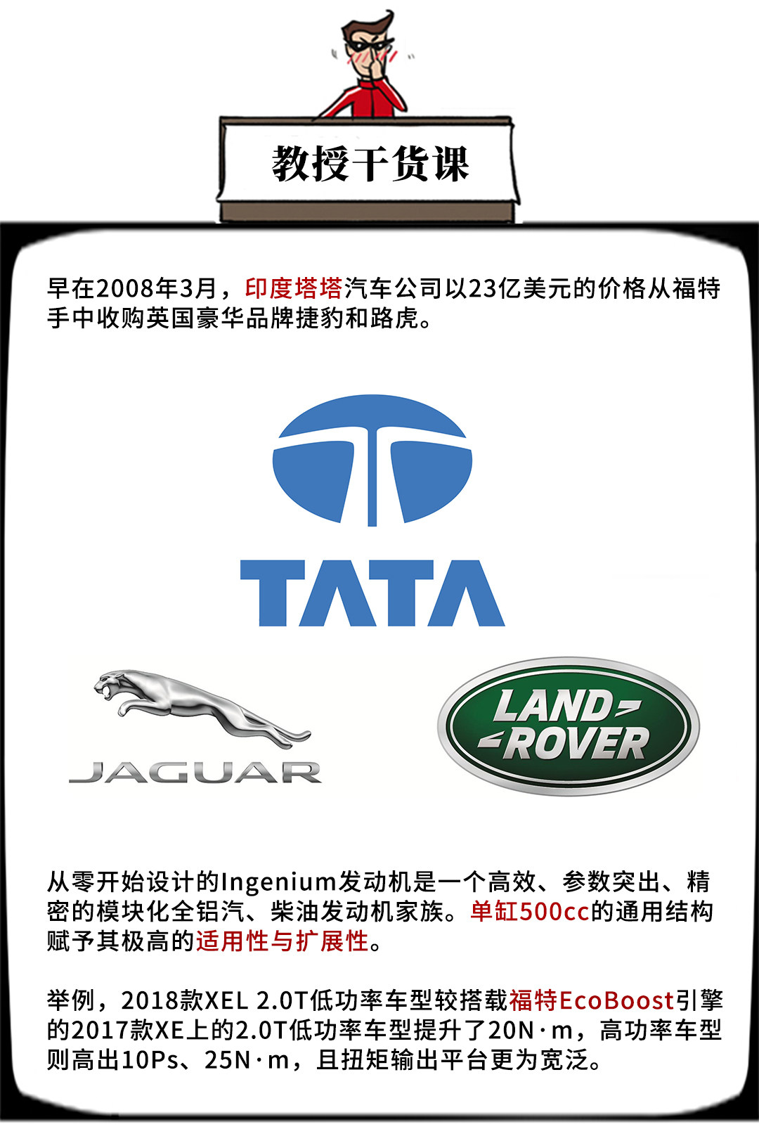 2018款捷豹F-PACE换装全新2.0T Ingenium四缸发动机,以取缔旧款的福特EcoBoost发动机,最大马力250Ps、峰值扭矩365N·m。