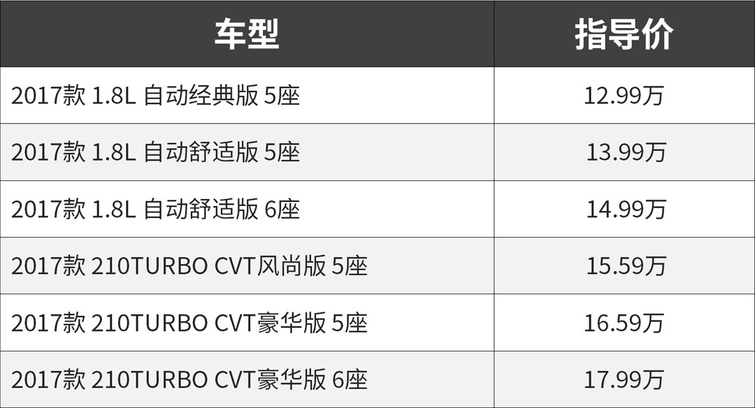 指导价:12.99-17.99万